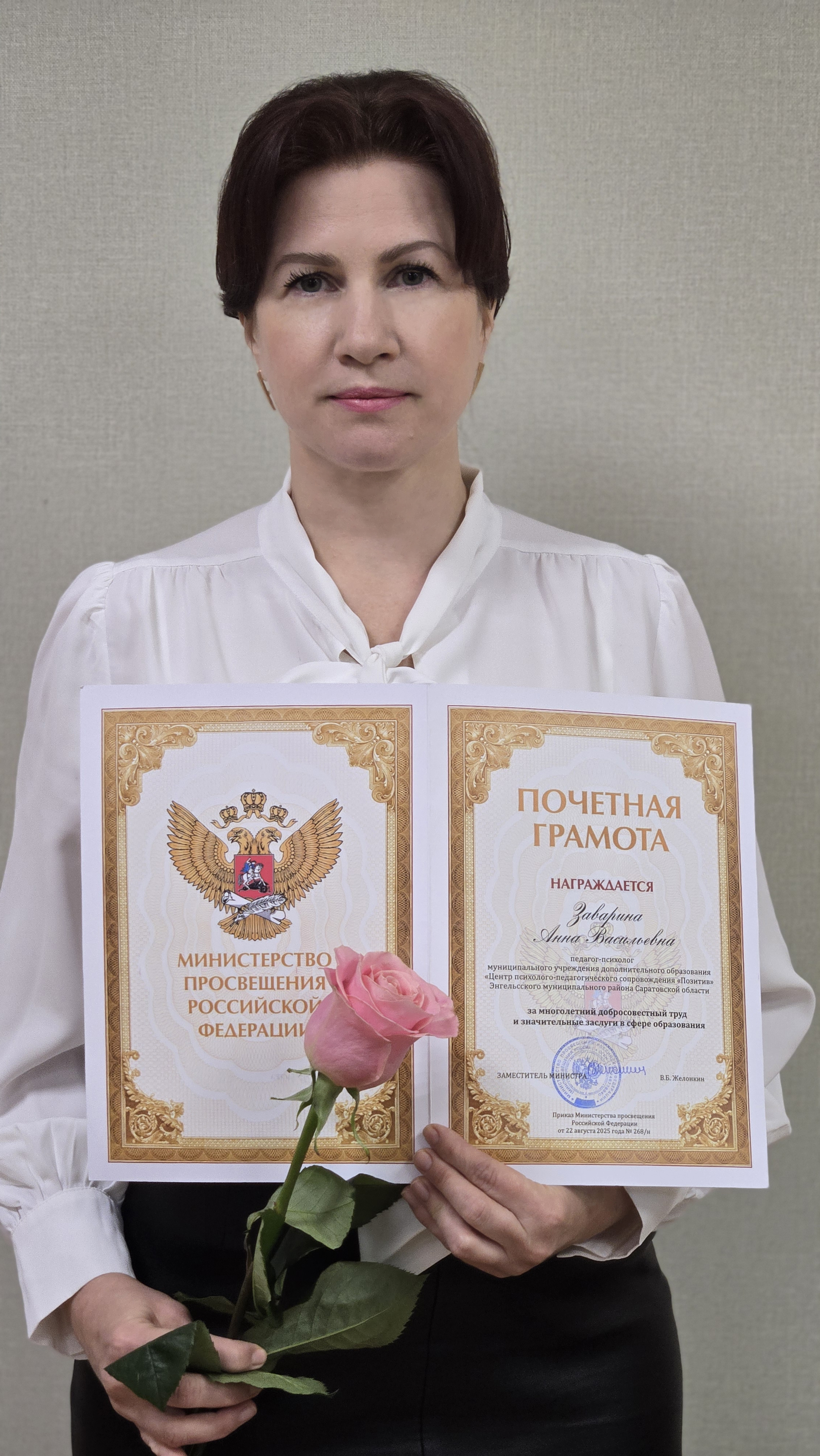 Анна Васильевна награждена Почетной грамотой Министерства просвещения Российской Федерации за многолетний добросовестный труд и значительные заслуги в сфере образования!