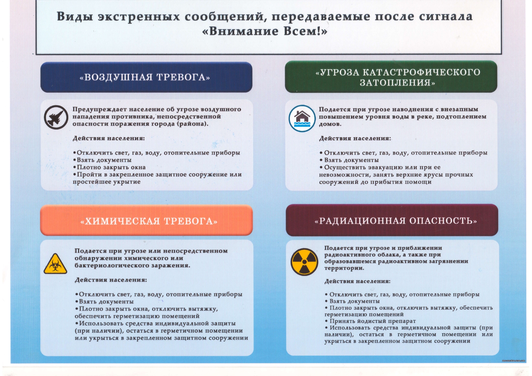 - Обучать персонал и учеников мероприятиям по гражданской обороне и улучшать материально-техническое оснащение школы.