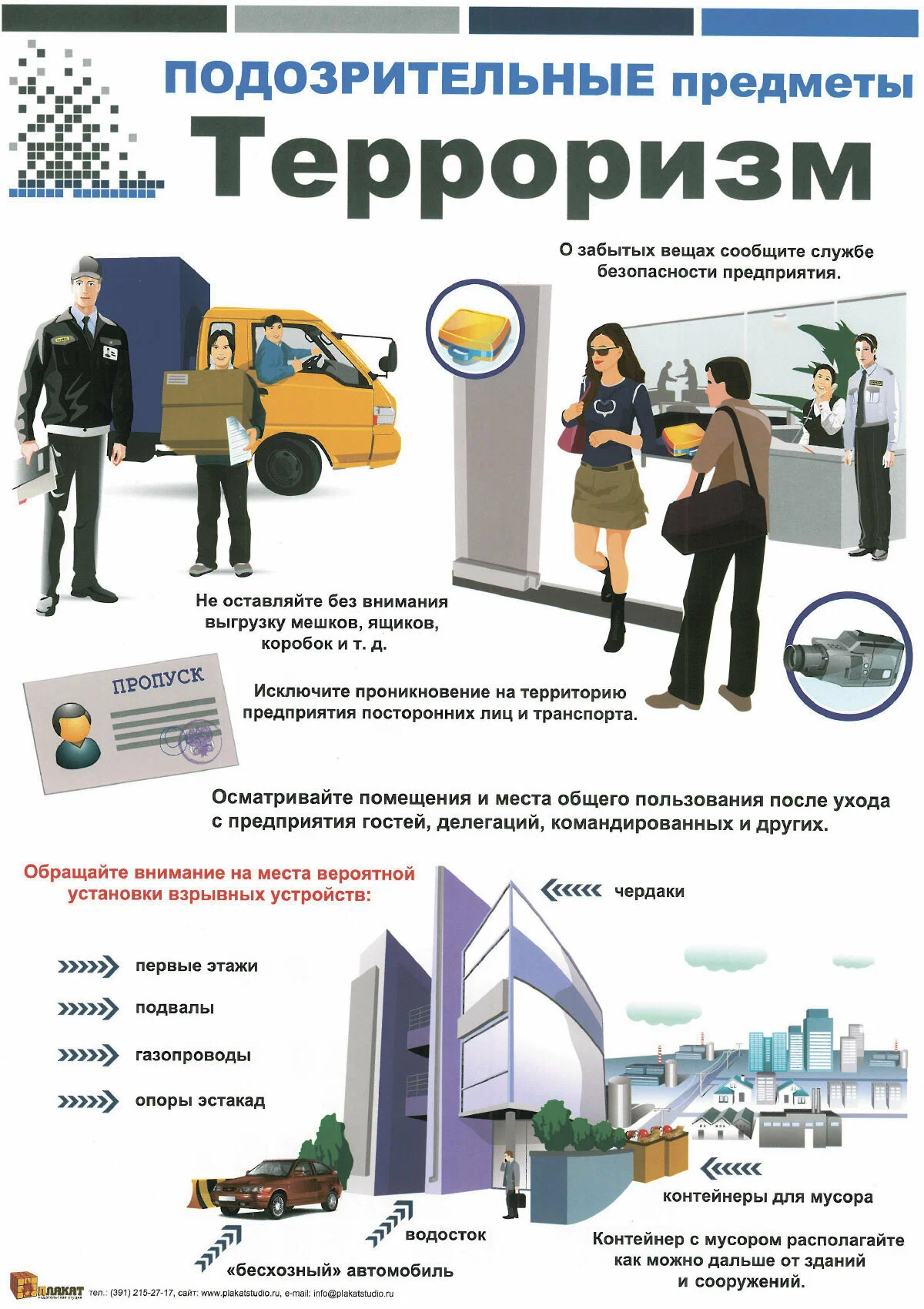 Если имеются подозрения на возможность организации теракта, следует усилить бдительность и немедленно докладывать директору о следующих подозрительных признаках: